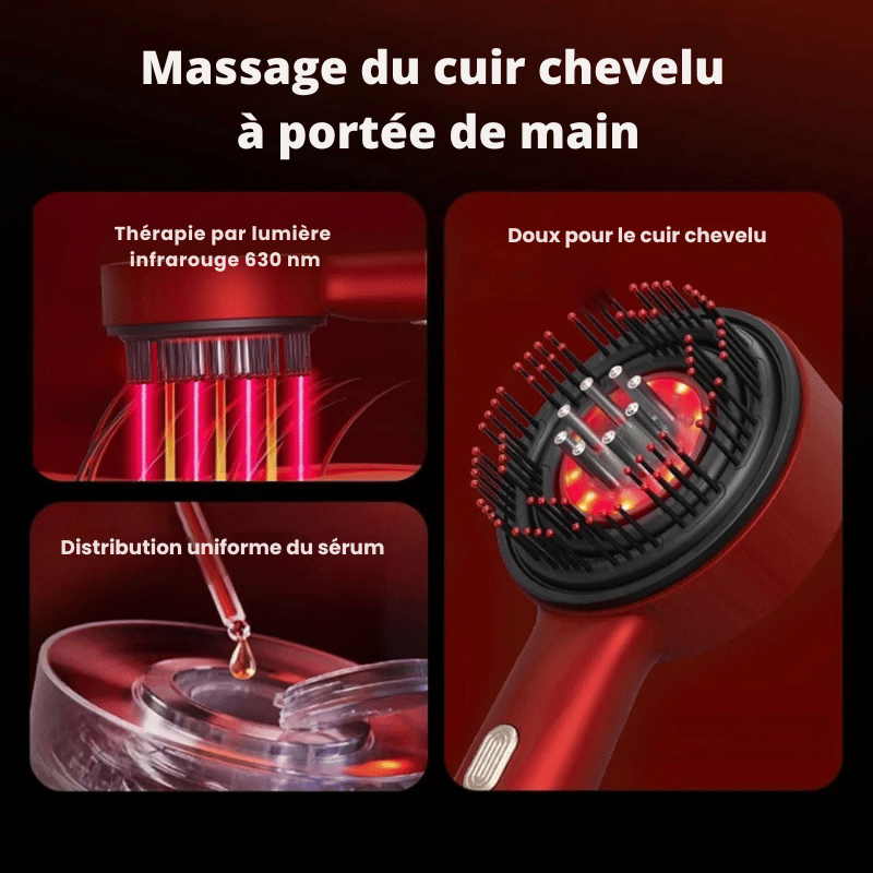 Brosse Électrique de Massage & Repousse Capillaire – Lumière Infrarouge & Diffusion d’Huiles